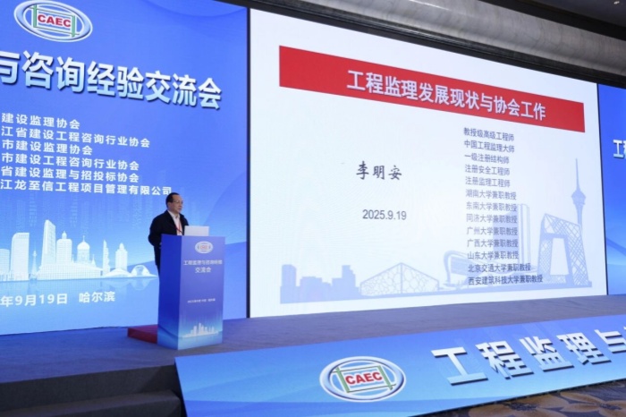 2025年9月19日,由中国建设监理协会主办,黑龙江省工程咨询行业协会、北京市建设监理协会、上海市建设工程咨询行业协会、江苏省建设监理与招投标协会、黑龙江龙至信工程项目管理有限公司协办的“工程监理与咨询经验交流会”在黑龙江哈尔滨成功召开。