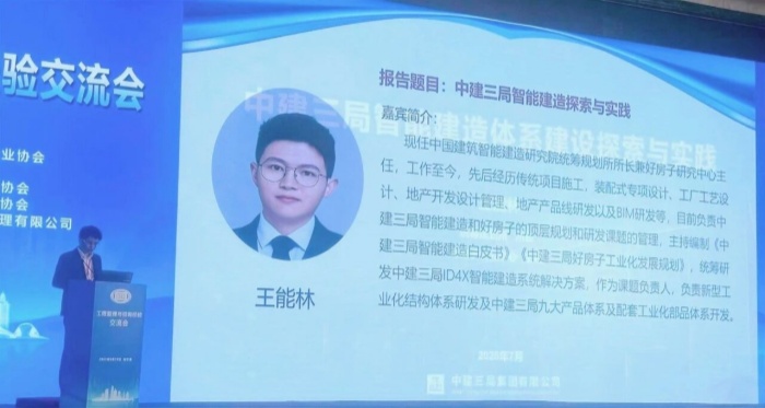 中国建筑智能建造研究院统筹规划所所长王能林作题为《中建三局智能建造探索与实践》的主旨报告。他围绕中建三局在智能建造领域的顶层设计以及为支撑规划落地配套的一部五院N平台的研发体系以及五位一体的产业体系,重点讲述了中建三局围绕智能建造的价值创造的发展目标,按照五化一体的技术路径,在设计、生产、施工和运维各环节围绕工业化和数字化所开展的研发活动以及取得实践成果。
