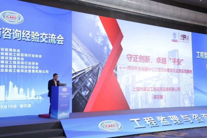 中国工程监理大师、上海市建设工程监理咨询有限公司董事长龚花强作题为《守正创新,卓越“平安”——深圳平安金融中心工程咨询与监理实践案例》的主旨报告,他围绕深圳平安金融中心工程介绍项目工程咨询策划的内容和工程监理工作,着重介绍了如何应用工程监理技术控制工程质量。