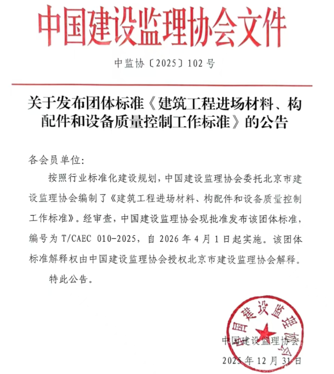 下一篇:转发中国建设监理协会关于征集2026年中国建设监理协会团体标准编制项目的通知