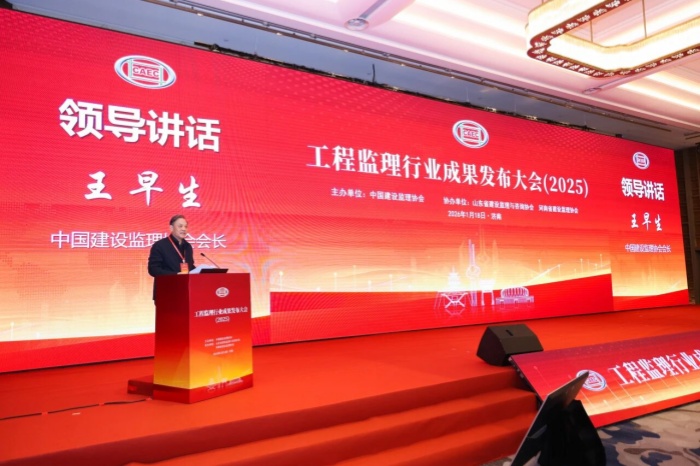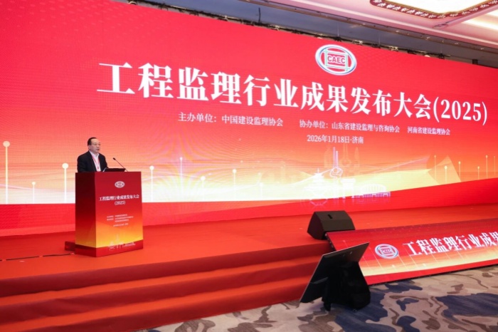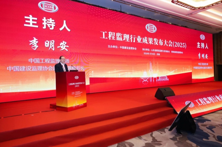 2026年1月18日,由中国建设监理协会主办,山东省建设监理与咨询协会、河南省建设监理协会协办的“工程监理行业成果发布大会(2025)”在山东济南召开。各省、自治区、直辖市工程监理行业协会主要负责人,有关行业专业委员会及各分会的主要负责人,北京交通大学、湖南大学、兰州交通大学、广州大学、西安理工大学等高校教授学者,中国工程监理大师,“工程监理青年人才”培养对象,中国建设监理协会理事,第二届全国工程监理知识竞赛获奖代表、首届全国高校工程管理与监理知识竞赛获奖代表,首批总监理工程师执业能力与信用评价AAA级代表以及有关新闻媒体等530余人参加会议。