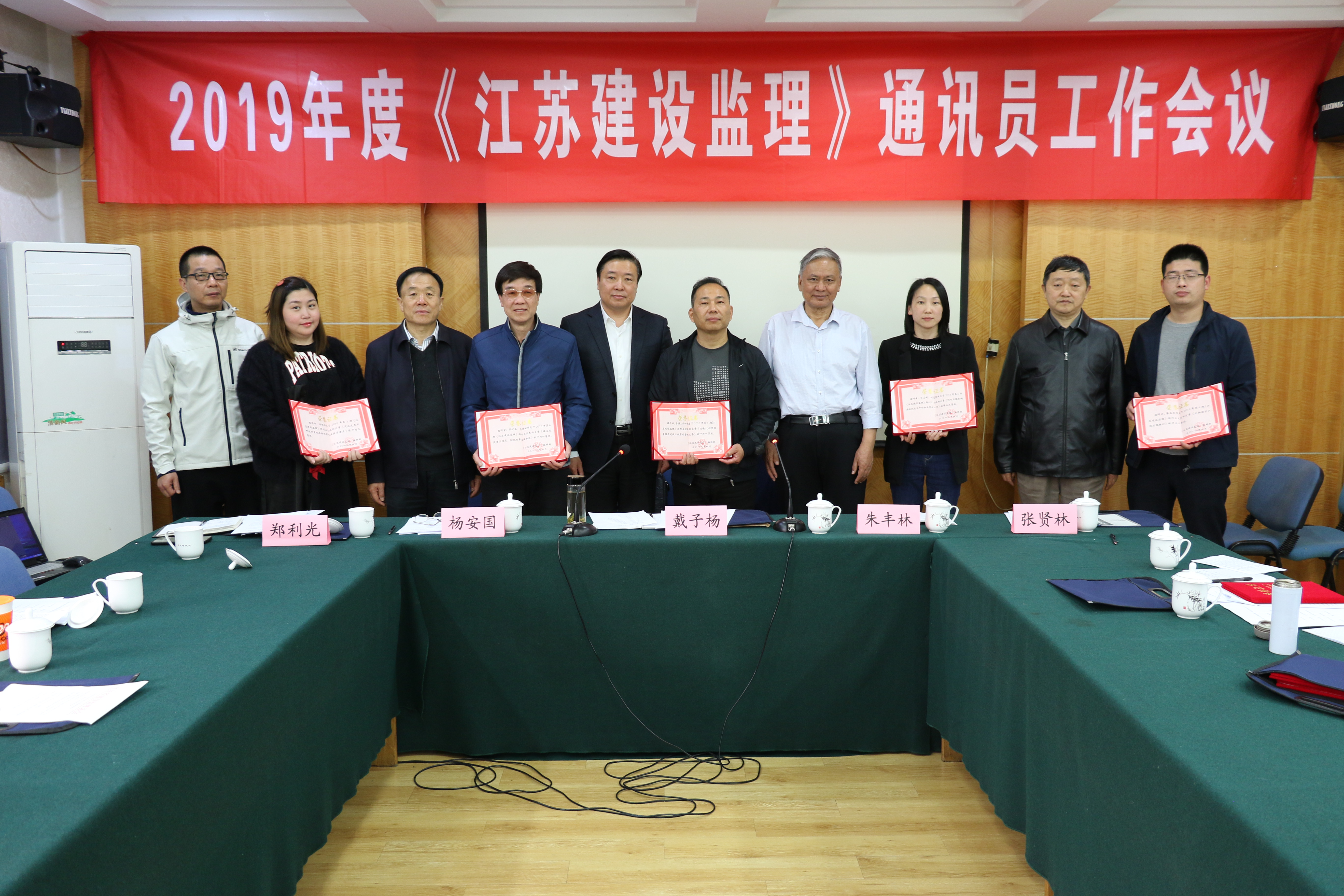 2019年4月26日下午。《江苏建设监理》编辑部在南京市京西宾馆召开2018年度《江苏建设监理》通讯员工作会议。江苏建设监理协会会长陈贵、杂志主编戴子扬、编委会主任朱丰林、编辑部所有成员、全省各地通讯员及部分优秀论文作者代表等近40人参加会议,会议由主编戴子扬主持。